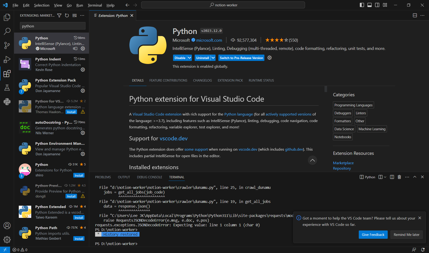 2. 파이썬 (Microsoft) 를 설치하세요 저는 이미 설치가 되어있는 건 참고하시기 바라요