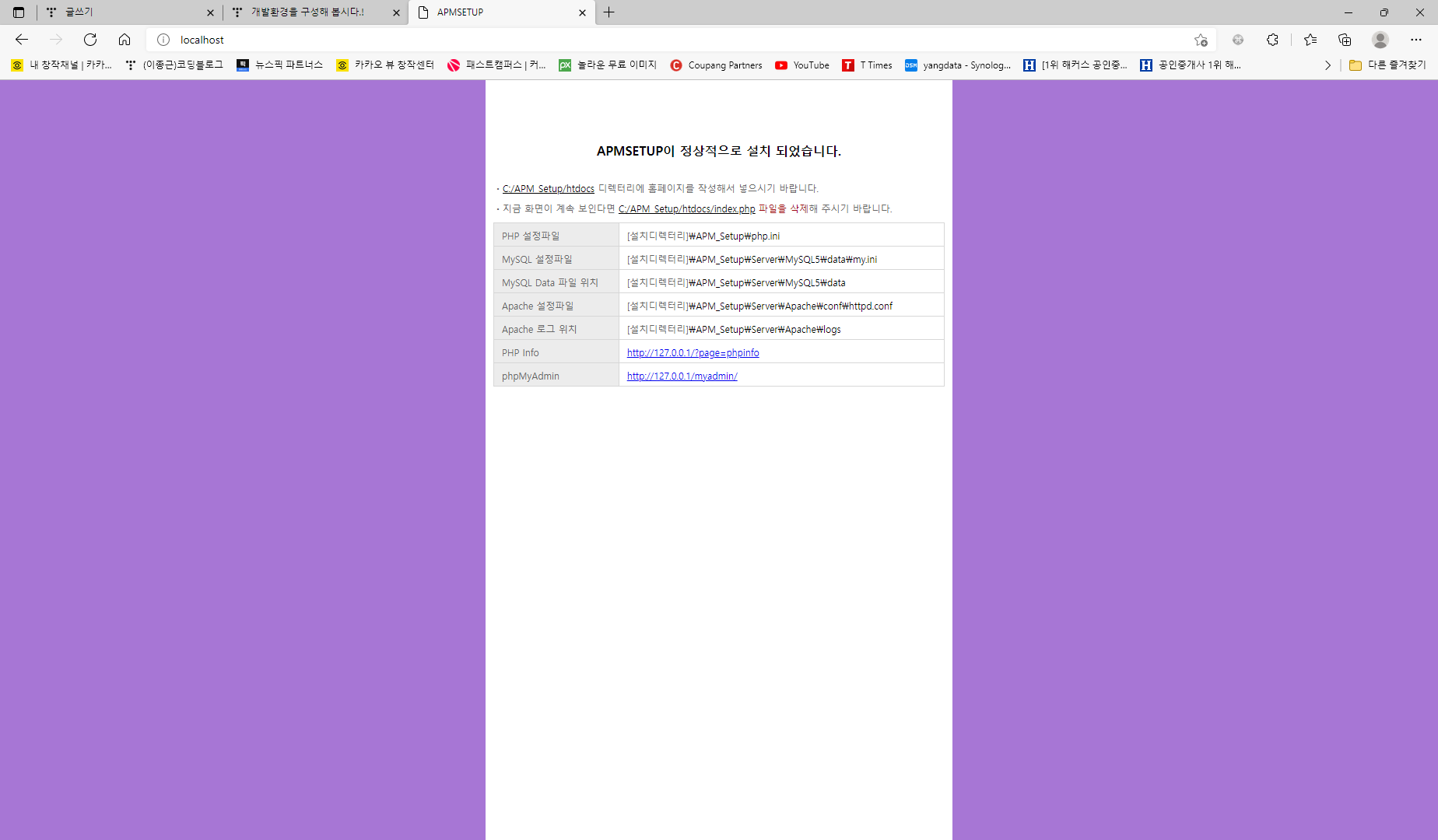 http://localhost/ 는 실제로는 서버에 지정해놓은 C:\APM_Setup\htdocs라고 생각하시면 됩니다. 서버에서 경로를 조절 가능한데 본 강의는 개발을 하려 함이니 알아만 두시고 넘어가시면 될 거 같습니다.