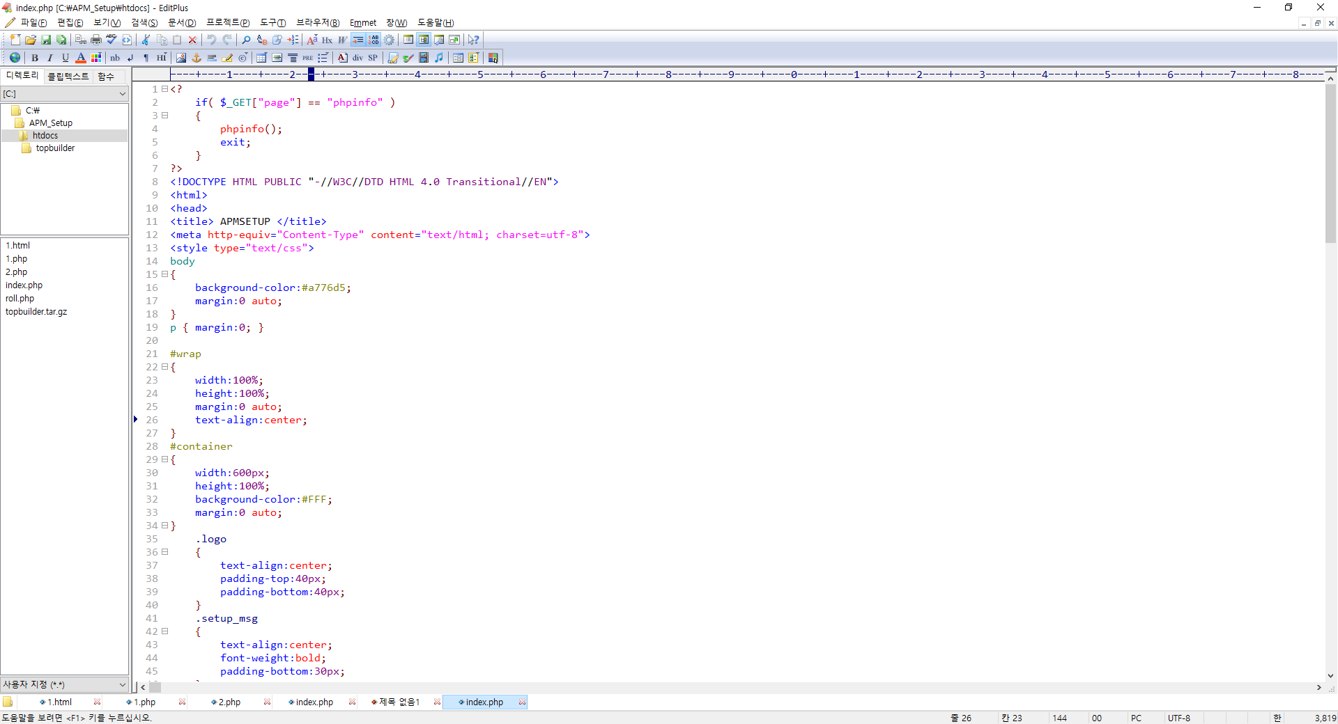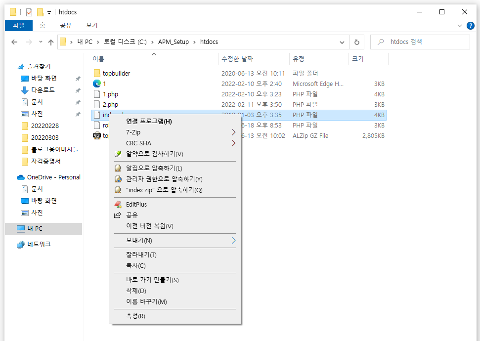 index.php 파일에서 마우스 우측 버튼을 클릭하신 후에 editplus를 선택해주세요.