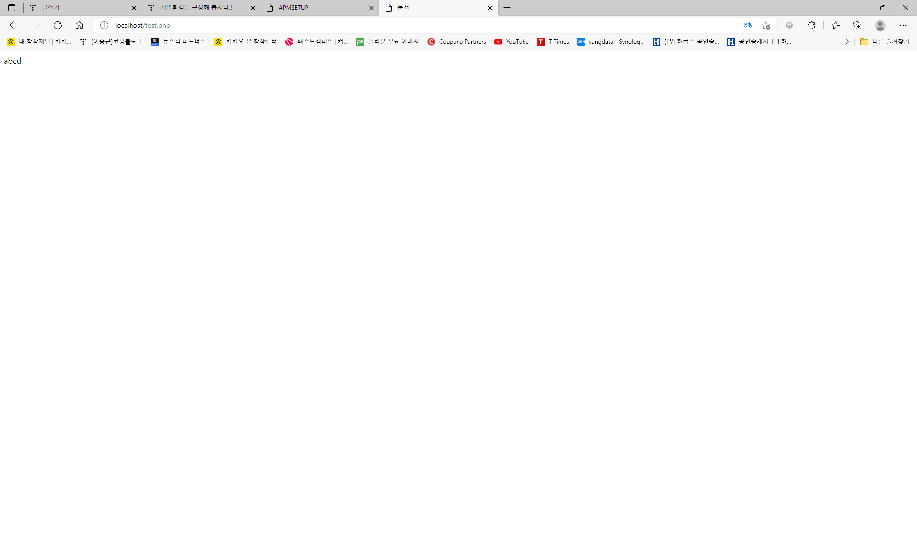 주소창에 http://localhost/test.php