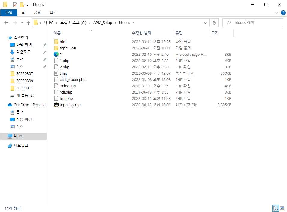 이번에는 디렉터리를 하나 만들어 보려고 합니다. (C:\APM_Setup\htdocs)에 html이라는 폴더를 만들어봅시다.