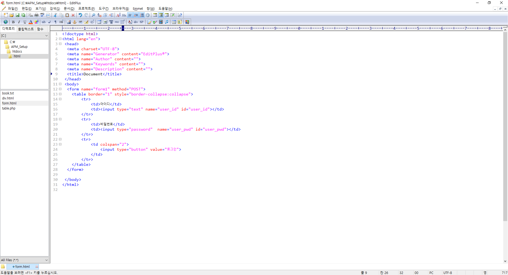 입력을 하신후에 브라우저에서 http://localhost/html/form.html 을 입력하시면